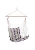 Create a comfy spot for lazy days with this cushioned swing chair by Outsunny. Featuring firm cotton ropes and a solid hardwood frame, this hanging chair is perfect for use in the garden or for camping, beach and mountain holidays. It boasts a thick padded seat and back support, together with a classic brown, off white and purple stripe design that means its as stylish as it is practical. Dimensions: Seat size: W 57cm x D 47.5cm. Backrest height: 47.5cm. Hardwood bar size: Diameter 3.3.cm x Length 95cm. Net weight:2.4kg. Weight capacity: 105kg.