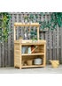 Learn moreA handy place to sort out your plants - and keep garden essentials together. Check out this Outsunny potting bench. Made from fir wood, it's strong and durable - suitable for outdoor use. A natural finish - leave how you want or paint it. It comes with two large bottom shelves, a top shelf and four hooks. The galvanised metal table top gives a solid workplace for preparing plants and more. Preparing your dream garden now has a destinated spot.