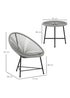 Sit and enjoy the outdoors with company, thanks to this Outsunny garden furniture set, featuring two Acapulco-style oval chairs and a matching coffee table. Flexible plastic rattan ropes with a hollow woven design promote airflow for a cool, wrapped cosiness. Tempered glass tabletop offers a sleek, easy-to-clean surface. Balcony table and chairs have a steel frame and adjustable foot pads: stable, strong and supportive. Relax in the chic, comfortable bistro table and chairs!