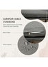 the fringed design creates a very cool look. The wood-effect plastic tabletop is tough and easy to clean. Both chairs and stools come with padded cushions for comfort.