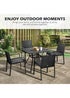 Learn moreA simple yet reliable way to bring everyone together, this season and beyond with this Outsunny garden dining set. It comes with four chairs and a matching table, with the frames of all pieces made for steel for strength. The chair seats are made from plastic wicker: a forever-stylish rattan look. Garden dining furniture set complete with padded and comfortable seat cushions.