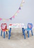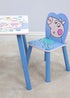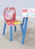 Our officially licensed Peppa Pig table and chair set includes a square table with 2 toddler sized chairs. The tabletop features a high quality print of Peppa and George painting and making a mess, while one of the chairs features Peppa on the back rest on a red background, and the other has George on a blue background. Thanks to its wipe clean surface the table set is versatile enough to be used for arts and crafts, painting, drawing, and for your young one to practice their writing or reading. They can also eat and drink at the table without fear or damaging the surface. The table and chair set is easy to assemble, with all the fittings included and has step by step instructions.