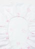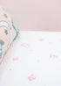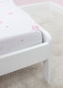Loved by children of all ages, Peppa Pig is colourful, fun, and a great role model. This officially licensed Peppa Pig fitted sheet is designed for junior beds and toddler cot beds, and has elastic all the way around the hem. The mattress cover fitted sheet features a repeating pattern of Peppa Pig, George, and baby sister Evie, in pink with polka dots on a white background, with the pattern running all over the sheet. Designed to fit junior beds with a standard depth mattress, the all-around elasticated fabric holds the fitted sheet in place, and makes it super easy to fit or remove and wash after accidents. Machine washable and tumble dryer safe at low temperatures, the Peppa Pig fitted sheet can be washed and dried quickly. Made from recycled and responsibly sourced polycotton, the sheet is breathable, warm, and kind to skin, while being considerate to the environment. Suitable for toddler, junior beds and cot beds, the sheet fits mattresses measuring 70 x 140 x 18cm, so it’s perfect for children and toddlers that love Peppa Pig.