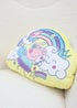 This officially licensed Peppa Pig reversible cushion features a print of Peppa as a fairy with an embossed glittery skirt and crown, with a rainbow and clouds and set on a yellow background. The reverse side features Peppa with George riding on the moon, with shooting stars and a rainbow. The shaped Peppa Pig cushion is made from a strokably soft, snuggly material and is plump enough to be used as a practical cushion, not just a decoration. Perfect as a Christmas present or a gift throughout the year for kids or adults alike, and great to brighten up a bedroom, sofa or armchair. It’s packed with padding to support them when they’re gaming in a chair, and comfortable enough to snuggle up on a sofa with on movie night, or even as a fun comforter for young children.