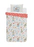 Immerse them in the world of Beatrix Potter with this officially licensed duvet set featuring the mischievous and adventurous Peter Rabbit. Includes one single duvet cover (137 x 198cm) and one pillowcase (50 x 75cm). 52% polyester/48% cotton. Machine washable at 30°C and can be tumble dried.