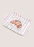 A cheerful, compact serving tray featuring soft pink stripes and a playful motif that brings a bright, stylish touch to your tea or coffee occasions. Crafted from lightweight material, it’s ideal for presenting drinks and pastries in a fun, decorative way.
