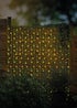 209 warm white LED battery operated Ivy curtain light with a 1.8m x 1.8m lit area on green cable interspersed with artificial green ivy and a 2m length to the battery pack. Automatically switches on when dark and can stay lit for up to 8 hours. Requires 3 AA batteries (not included).