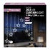 Silver and white star curtain light with a lit area of 1.2 meter by 1.2 meter. 303 white static LED bulbs in silver wire. 9 sparkling stars hung from wires of varying lengths to create a lovely festive lighting effect in windows. Easy to hang and suitable for indoor and outdoor use. Mains operated with a 5 meter cable to the first bulb.