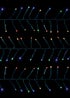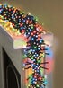 480 Multi-coloured LED Cluster Brights® Christmas lights with a lit length of 6.2 m and10m length of green cable from the transformer to the first bulb. Multi-action (including static) with a timer function that switches on for 8 hours and off for 16 hours. Suitable for indoor or outdoor use.