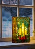 Premier Decorations Battery Operated Candles & Holly Lit Stained Glass Window Ornament