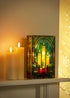 Add a glowing touch of tradition to your Christmas décor with this stained glass effect lit ornament. Featuring a double-sided design with glowing candles and holly, this festive tabletop decoration is lit from the centre with 50 warm white LED lights, creating a cosy stained-glass window look. Perfect for use on your table, mantel, shelf, or window display, it spreads warm seasonal charm while being easy to place anywhere thanks to its battery operation (2 x AAA, not included). A timeless Christmas decoration you’ll love bringing out year after year.