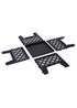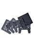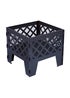 Black square metal fire pit with meshed lattice design. The collapsable panels slot together easily for storage and transportation. Made from powder coated steel with a black matte finish. Includes poker.