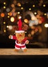 32cm musical animated reindeer in Santa suit. When activated dances and sings “jingle bells”. Requires 3 AA batteries (not included).
