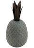Large decorative pineapple ornament made from textured resin and finished with black metal leaves