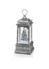 Add a sparkling, festive touch to your home with this chrome lantern featuring a Christmas tree figurine inside. Filled with swirling glitter water, it creates a snowing effect when activated. Lit from within, it brings a shimmering display to tables, shelves, or mantelpieces. Battery-operated (4×AAA) for flexible placement, it can also be connected to mains power (transformer not included).
