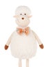Standing woolly sheep plush ornament with super soft wool and a fetching orange and blue bow tie.