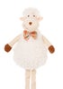 Extendable legs standing woolly sheep plush ornament with super soft wool and a fetching orange and blue bow tie.