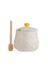 The Daisy honey pot & drizzler is part of a fully co-ordinating collection, including ceramic storage and table top accessories.