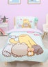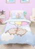 Pusheen, the adorable tabby cat who’s loved by girls, boys, and adults all around the world thanks to the charming comics and cute plush merch. This officially licensed Pusheen bedding set includes a single bed duvet cover and a matching pillowcase. The bedding set is reversible, so you can freshen up the look of your child’s bedroom whenever they like. The front side of the duvet cover features a large print of Pusheen floating through a starry sky on a diffused pink and blue background, with a matching side to the pillowcase. The reverse side features Pusheen’s friends including Sloth and Pip on a green background with hearts and ‘enjoy every day’ slogan, with the pattern matched on the pillowcase. This Pusheen bedding is made from recycled super soft microfibre and is printed to a high standard. The bedding features popper closing so it’s easy to remove and wash, and is machine washable, and tumble dryer safe at a low temperature. Designed for single beds, the duvet cover measures 135 x 200cm, and the pillowcase is a standard UK size of 74 x 48cm.
