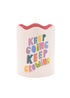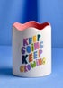 Brighten up your space with this inspiring ceramic vase from Raspberry Blossom. Featuring the uplifting phrase "Keep Going Keep Growing" in bold, colourful lettering, it brings positive vibes to any room. The soft white exterior is complemented by a wavy pink interior, making it a standout piece whether filled with flowers or displayed on its own.