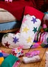 Brighten up Christmas morning with this vibrant Christmas sack from Raspberry Blossom. Adorned with colourful tufted star appliqués and finished with a bold red cuff, it brings festive fun and style in equal measure. A playful pom-pom tie detail adds an extra dash of charm, making this generously sized sack perfect for kids (or kids at heart) eagerly awaiting Santa’s surprises.