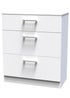 Learn moreReady Assembled deep 3 drawer chest of drawers is practical and stylish, with drawers of 2 different sizes. Perfect for any home as a free standing storage unit. With its sleek metal handles and wood effect finish this stunning design gives both a traditional and contemporary feel to any room. Available in a number of different pieces to cater for your individual storage needs. All our furniture is made in the United Kingdom, to the highest quality. It is delivered direct to your location of choice by one of our two man delivery teams, and come full assembled.