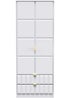 Learn moreReady Assembled distinctive and modern, this Cube Tall Double 2 Drawer Wardrobe makes a unique and modern addition to your home. Comes with sleek gold handles and hairpin metal legs. Comes in a scrtach resistant White smooth matt finish, with distinctive "Cube" patten fronts. Comes with linen effect lined drawers on quality smooth metal runners. Dimensions (HxDxW): 197cm x 53cm x 74cm Manufactured to order in the UK. 12 Month manufacturer Warranty. Delivered by our 2-Man delivery teams to your home and room of choice. Please note if the item has legs, these will be removed and sent in a separate box to avoid damage in transit. Please note we currently can ony deliver to a UK Mainland address.
