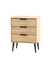 Learn moreWith it's clean and modern styling the Milano Compact 3 Drawer Midi Chest is perfect for the modern home. Features sturdy tappered black wooden legs and sleek metal handles. Comes in a scratch resistant light oak finish. Features drawers with linen effect linings on smooth high quality metal runners. Dimensions (HxDxW): 74cm x 39.5cm x 57.5cm Manufactured to order in the UK. 12 Month manufacturer Warranty. Delivered by our 2-Man delivery teams to your home and room of choice. Please note if the item has legs, these will be removed and sent in a separate box to avoid damage in transit. Please note we currently can ony deliver to a UK Mainland address.