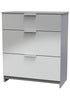 Learn moreReady Assembled deep 3 drawer chest of drawers is practical and stylish, with drawers of 2 different sizes. Perfect for any home as a free standing storage unit. This Fresh modern range features a half plinth design with solid metal pull handles and comes in a range of scratch resistant gloss or matt finishes. All our furniture is made in the United Kingdom, to the highest quality. It is delivered direct to your location of choice by one of our two man delivery teams, and come full assembled.