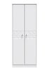 Learn moreReady Assembled tall double door wardrobe featires a full width hanging rail and top level storage shelf and is perfect for any bedroom. This superb range is a classic example of a fresh, clean design. Indented cross design drawer and door fronts enhance its eyecatching modern appearance and it’s finished in with polished metal handles. All our furniture is made in the United Kingdom, to the highest quality. It is delivered direct to your location of choice by one of our two man delivery teams, and come full assembled.