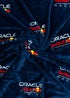 Perfect for Formula 1 racing fans young and old, this officially licensed Red Bull Racing fleece blanket is great throughout the year. Featuring a repeated pattern of the Oracle Red Bull Racing team logo, set on the team livery colours of dark blue. Great all around the house, either as an extra layer in bed, lazing on the couch watching a film on family movie night, keeping yourself comfortable when gaming in a chair, keeping warm while doing homework, or as an extra layer when out enjoying the garden. The Red Bull fleece blanket is lightweight and folds up to a compact size, making it great for car journeys, travel, and holidays, whenever you need to wrap up warm! This large fleece blanket measures 100 x 150cm, plenty big enough to keep you covered up, or act as a throw at the end of a bed. Made from soft strokable textured polyester, this fleece blanket is machine washable, so it’s easy to throw in to a wash to freshen up if there’s any spills or accidents, and tumble dryer safe to quickly dry ready to be used again.