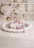 Nature inspired woodland theme with soft colour palette and lots of cute new friend characters. Softly padded for extra support this new play gym is suitable for newborn babies and features a tummy prop for babies to use when they can roll onto their tummies. Suitable from birth. Padded floor play gym with detachable arches features soft hanging cute toys which include activities that can be used for independent playtime. Helps stimulate baby’s senses whilst providing a soft and comfortable environment to play in. Great gift idea for newborn baby.