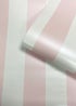 Sassy B_ Stripe Tease Pink wallpaper is so fresh, this classic striped wallpaper comes in the prettiest soft candy pink & white. Shiny inks complete the look. Dimensions L 10.05m x W 53cm