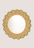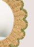 This mirror features a circular design with a woven green edge, adding a touch of natural and contemporary flair to any space. The scallop edge detail enhances the mirror's aesthetic appeal, making it a unique and eye-catching piece.