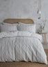 Serene Crinkle Stripe Embossed White Duvet Cover Set