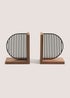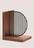 Learn moreAdd a modern and industrial touch to your home décor with our unique set of 2 wooden bookends.. This set of 2 bookends combines the warmth of wood with the sleekness of black metal, making them a striking and functional addition to your home office or library.