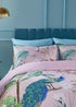 Soiree Peacock Jungle Sateen Pink Duvet Cover Set