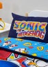 Learn morePositive, heroic and brave, Sonic the Hedgehog is a gaming and movie icon, and is loved by gamers of all ages. This bedding set is designed for single beds and includes a reversable duvet cover and a reversible pillowcase, so you can easily freshen up the look of your child’s bedroom. The front side of the duvet cover features a retro-inspired print of Sonic, Tails and Knuckles with gold rings, Chaos Emeralds, pixel blocks and the Sonic logo in a graffiti stye font on a black background, with a matching side to pillowcase. The reverse side features a repeating pattern of Sonic, Tails and Knuckles, with gold rings and Chaos Emeralds on a light blue background, with a matching side to the pillowcase. Made from a polycotton mix of responsibly sourced cotton and recycled polyester. This quilt cover and pillowcase bedding set is soft and comfortable, and has popper fasteners so it’s easy to remove from the duvet to wash and to remake afterwards. The duvet cover and pillowcase are machine washable, and tumble dryer safe at a low temperature. Designed for single beds, the duvet cover measures 135 x 200cm, and the pillowcase is a standard UK size of 74 x 48cm.
