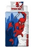 Starring everyone’s favourite web-slinging crimefighter, our Marvel Spiderman bedding range is great for Spidey and comic book fans. This officially licensed Marvel Spiderman bedding set is designed for single beds and includes a reversible duvet cover and pillowcase, with glow in the dark detail to liven up bedtime. The front side features a large comic book style print of Spiderman swinging through New York, with glow in the dark eyes and bricks. The reverse side features a repeating pattern of Spiderman with webbing on a pale blue brick background, which runs on to the pillowcase. The bedding is made from recycled polycotton (52% cotton), and printed to a high standard. The duvet cover has popper fasteners so it’s easy to remove to wash and remake afterwards. The duvet cover and pillowcase are machine washable, and tumble dryer safe at a low temperature. Designed for single beds, this glow in the dark Marvel Spiderman duvet cover measures 135 x 200cm, and the pillowcase is a standard UK size of 74 x 48cm.