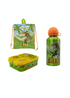 Dinosaur Lunch Box Set - Containing a 400ml aluminium bottle and a multi compartment lunch box ideal for any Dinosaur fan. The aluminium bottle features the iconic T-Rex and holds up to 400 ml of cold beverages. The bottle comes with a lid and is perfect for both children and adults. The bottle is easy to carry and can be taken on-the-go for outdoor activities. The lunch box is perfect for storing and organizing your food for school, work, or picnics. The lunch box has a height of 4.5 inches and a width of 6.5 inches, providing ample space to hold different types of food. It's great for packing sandwiches, fruits, snacks, and more. This set is a great gift for any Dinosaur fan. Carry your lunch in style with this fun and colourful drawstring bag featuring a Dinosaur design. Made from durable fabric, this lunch bag is perfect for boys and girls and is ideal for keeping food fresh and cool. Measuring 30cm in length and 25cm in width, it has ample space for your lunch box, fruit, and drink. The bag is easy to carry with its drawstring closure and is perfect for school, picnics, and days out with the family. Show off your love for Dinosaurs with this unique lunch bag.