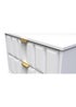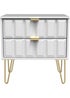 Learn moreDistinctive and modern, this Cube Wide 2 Drawer Bedside Table makes a unique and modern addition to your home. Comes with sleek gold handles and hairpin metal legs. Comes in a scrtach resistant White smooth matt finish, with distinctive "Cube" patten fronts. Features drawers with linen effect linings on smooth high quality metal runners. Dimensions (HxDxW): 52.5cm x 39.5cm x 57cm Manufactured to order in the UK. 12 Month manufacturer Warranty. Delivered by our 2-Man delivery teams to your home and room of choice. Please note if the item has legs, these will be removed and sent in a separate box to avoid damage in transit. Please note we currently can ony deliver to a UK Mainland address.