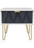 Learn moreDistinctive and modern, this Prism Single Drawer Bedside Table makes a unique and modern addition to your home. Features Gold Metal Hairpin legs and sleek metal handles. Comes in a scratch resistant Indigo and white smooth matt finish, with distinctive "Diamond" patten fronts. Features drawers with linen effect linings on smooth high quality metal runners. Dimensions (HxDxW): 41cm x 39.5cm x 45cm Manufactured to order in the UK. 12 Month manufacturer Warranty. Delivered by our 2-Man delivery teams to your home and room of choice. Please note if the item has legs, these will be removed and sent in a separate box to avoid damage in transit. Please note we currently can ony deliver to a UK Mainland address.