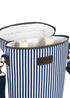 Upgrade your picnics with the stylish and functional Three Rivers bottle carrier! The clean fresh lines of navy and white stripes create the perfect look for that chill-out picnic, whether it’s on a deserted beach or in a meadow beside the river. This premium 2-bottle insulated cooler is large enough to hold 2 Champagne or 2 litre bottles and is ideal for enjoying an al-fresco meal. The bottle cooler has a double zip for ease of access, and an adjustable shoulder strap and for added protection, a bottle divider is provided.