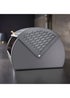 Learn moreTidily store your baked produce away within the durable structure of this bread bin. Supporting a rolltop lid to grant access to the contents inside, the quality stainless steel material features a black coated V shaped texturing to the roll top lid to add a splash of style across your kitchen side. The large capacity provides plenty of storage space to easily fit a variety of sized loaves, bagels, crumpets and muffins, complete with ventilation holes across the main body so your perishables remain fresher for a longer period of time. The durable metal design is also easy to clean, requiring just a simple wipe down with a damp cloth to maintain. This bread bin forms part of a wider empire kitchen collection which includes a range of essential kitchen and other domestic products, featuring canisters and a mug tree and towel pole set.