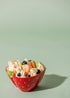 Bring strawberries and cream to life with the Typhoon World Foods Strawberry bowl. Beautifully hand-painted in a rich red with delicate yellow seeds and green leaves, it’s little wonder this fun bowl is a crowd favourite! This set contains 2 bowls. With a generous capacity of 230ml, you can serve up an abundance of nibbles, small desserts and finger foods while adding a splash of colour to your dinner table or outdoor setting! Whether celebrating Wimbledon or simply soaking up the sunshine in the garden, this strawberry bowl is a summertime essential. Produced from ceramic and finished with a durable-coloured glaze, the bowl resists chipping and cracking withstanding the rigours of everyday use. H6 x W12 x D12cm / H2.3” x W4.7” x D4.7”