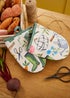 Celebrate the joy of growing your own with Time to Grow, a beautifully illustrated kitchen textile range inspired by a love of gardening, seed packet art, and the simple pleasures of home-grown produce. Hand-painted in delicate watercolours, the design features vintage gardening tools, seed packets, and vegetables, all set against a natural, earthy background that reflects the wholesome spirit of the allotment and kitchen garden. Fun items include the apron, where carrots peek cheerfully from the pocket in a design layered with floral and foliage motifs inspired by classic Arts and Crafts patterns. Playful details, like the on-trend cabbage cosy and quirky carrot gauntlet, all add a sense of fun and make the range a delightful talking point in any kitchen. With its blend of traditional inspiration and original artwork, Time to Grow creates heirloom-quality pieces that feel timeless yet fresh, perfect for garden lovers, makers, and home chefs alike.