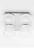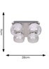 Introduce a contemporary element to your home décor with this four way ceiling light fitting. Suiting any living room, bedroom or bathroom this ceiling light features statement metal with glass shades. The integrated LED bulbs give off a warm white glow, perfect for creating a soft ambiance. With a perfect balance of style and functionality, this light brings a touch of modern sophistication to any space. Complete with Integrated LED bulb.