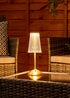 Whether you need a reading light, a bedside lamp, or a decorative lamp for outdoors, our rechargeable dimmable table lamp is a versatile addition to any space. With a built in rechargeable battery that allows the lamp to go cordless and be placed anywhere in the room, without the need for a socket. Simply charge up with the USB plug then touch the switch to turn the light on and off or hold for dimming. This on trend mushroom design lamp gives off a warm white glow, has three brightness levels and comes in a gold finish with a clear tapered lampshade. Please Note - The recommended charging time for full charge is at least 1-2 hours to get 3-4 hours glow time. Charge the lamp at least once a month to prolong the battery life. Includes integrated LED bulbs.