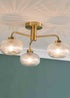 Illuminate your space with this three way ceiling light fitting. Suiting any living room, bedroom or bathroom this ceiling light features statement metal with ribbed glass shades. The shades not only provide a stylish look but also diffuses the light softly, creating a cosy atmosphere. With a perfect balance of style and functionality, this light brings a touch of modern glamour to any space. Requires bulb with G9 fitting. This light is IP44 rated making it suitable for bathrooms.