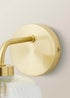 Illuminate your space with this wall light fitting. Suiting any living room, bedroom, bathroom or reading nook this wall light features statement metal in a gold finish with a clear glass shade. The ribbed glass shade not only provides a stylish look but also diffuses the light softly, creating a cosy atmosphere. With a perfect balance of style and functionality, this light brings a touch of modern glamour to any space. Requires bulb with G9 fitting. This light is IP44 Rated making it suitable for bathrooms.